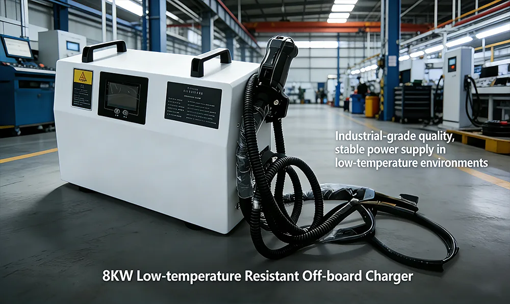 8KW कमी-तापमान प्रतिरोधक ऑफ-बोर्ड चार्जर हे उच्च-शक्तीचे स्वतंत्र चार्जिंग डिव्हाइस आहे जे विशेषतः कमी-तापमान वातावरणासाठी डिझाइन केलेले आहे. थ्री-फेज एसी पॉवरचे स्थिर डीसी पॉवरमध्ये रूपांतर करणे, इलेक्ट्रिक फोर्कलिफ्ट आणि स्टॅकर्स यांसारख्या औद्योगिक उपकरणांच्या पॉवर बॅटरी कार्यक्षमतेने चार्ज करणे हे त्याचे मुख्य कार्य आहे.